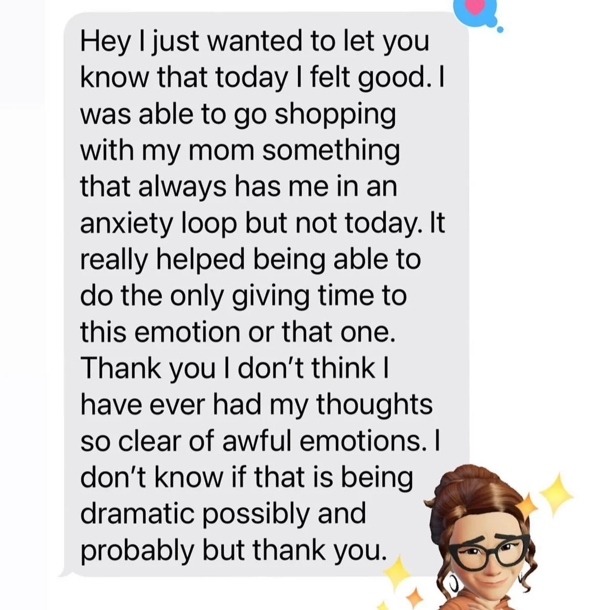 I wasn't sure how all of this was going to work but I'm truly happy surprised grateful that it is working. She's helped me to discover and ReDiscover Who I Really Am. And in turn help me to recognize and turn around fears and insecurities so that I am more well-rounded and know I'm getting better. Gave me tools to work with when I recognize I need them. They've been very helpful. And I'm so thankful for her gentle and guiding way about her. She's very intelligent is right on the Mark helps me to realize who I am and what I want for me. I want whatever years I have left to be as beautiful as I thought they would be when I was younger as a teenager. Thank you thank you.
