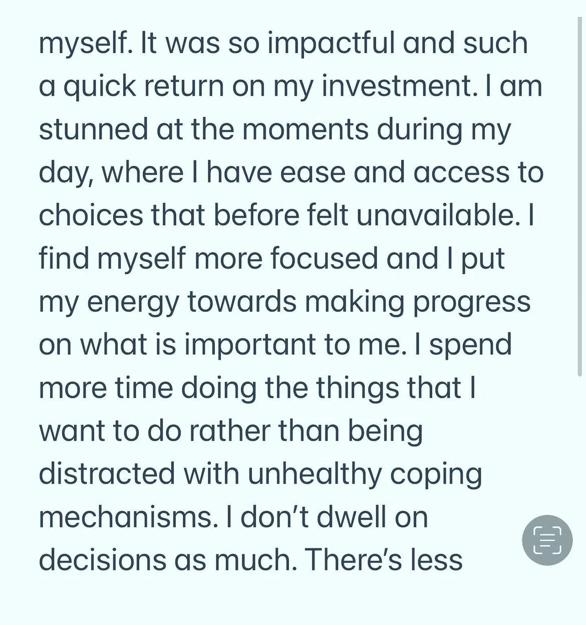 From the moment I started my session with Maya, it became evident that her expertise and compassionate approach were going to make a significant impact on my life. Through our hypnotherapy session, Maya guided me to recognize and understand that my current behaviors were deeply rooted in various periods of my past. She helped me realize that these behaviors were no longer serving me, functioning as outdated programming that needed to be addressed.