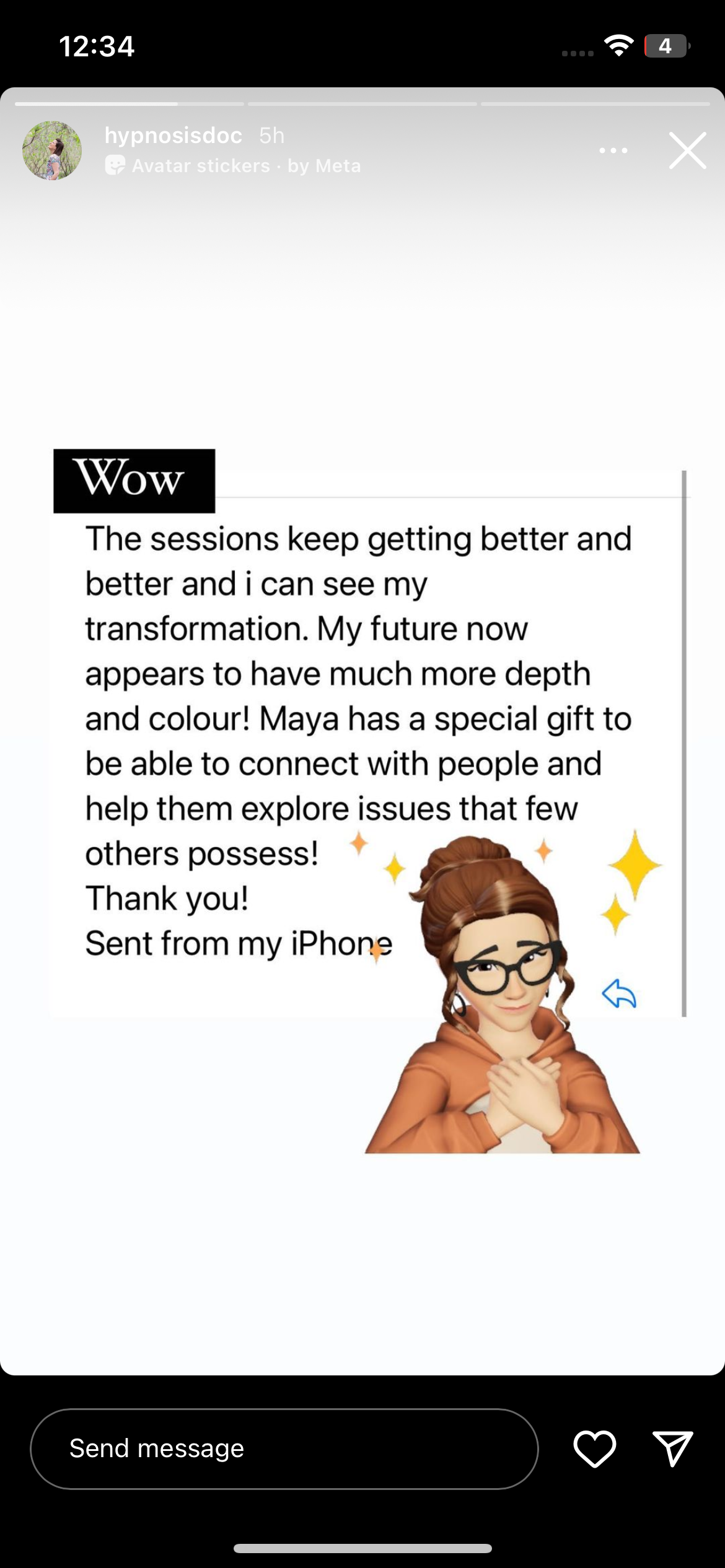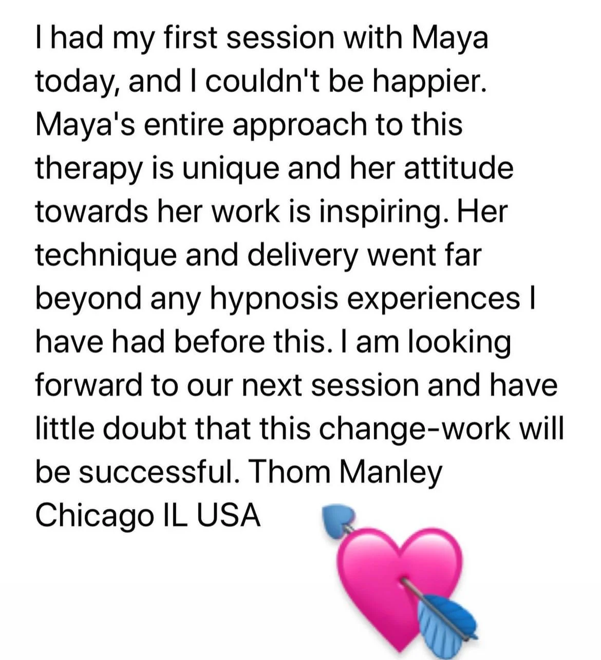 Thank you, Maya, for being an exceptional hypnotherapist and for enabling me to live a more fulfilling life.