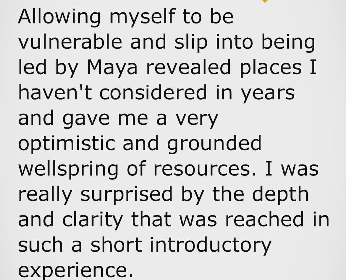 A transformative, rebirthing experience that arrived right on time for me. Highly recommend working with Maya :)