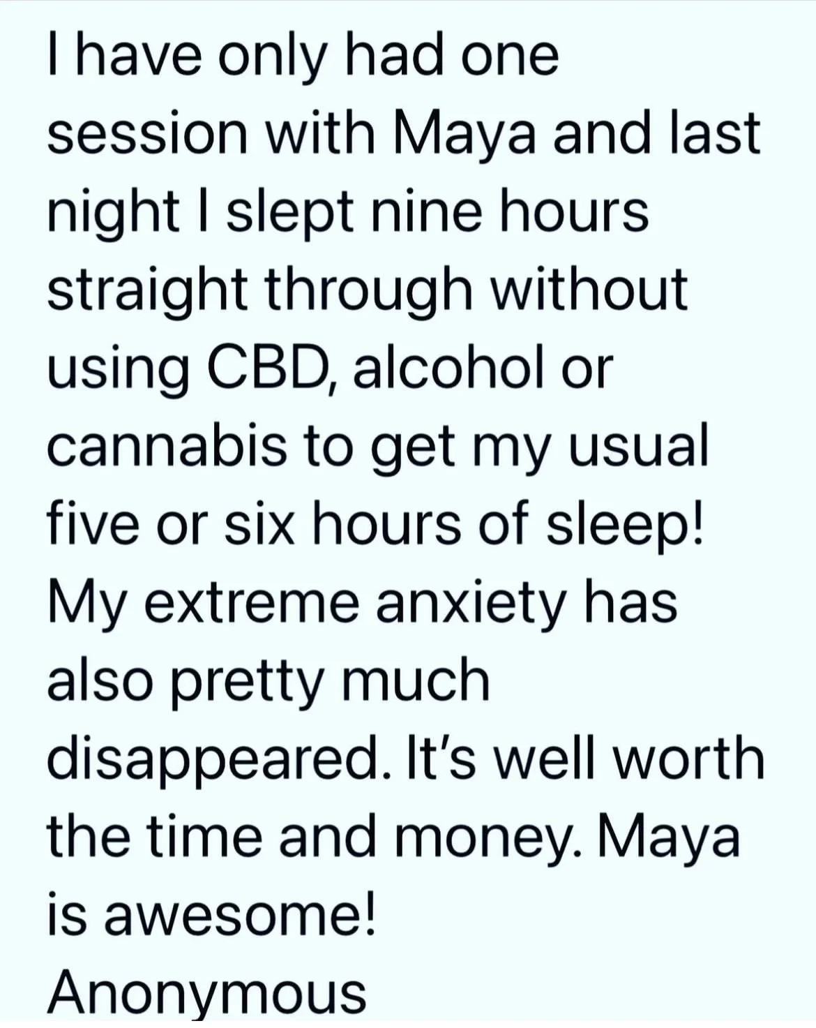 Before meeting Maya I was skeptical to the hypnosis, but always curious, working with Maya has been great she knows how to lead me to something that I probably don't want to know about me, but once she does, I connect with myself and I believe again, and it's something that endures. I love the way I feel now.